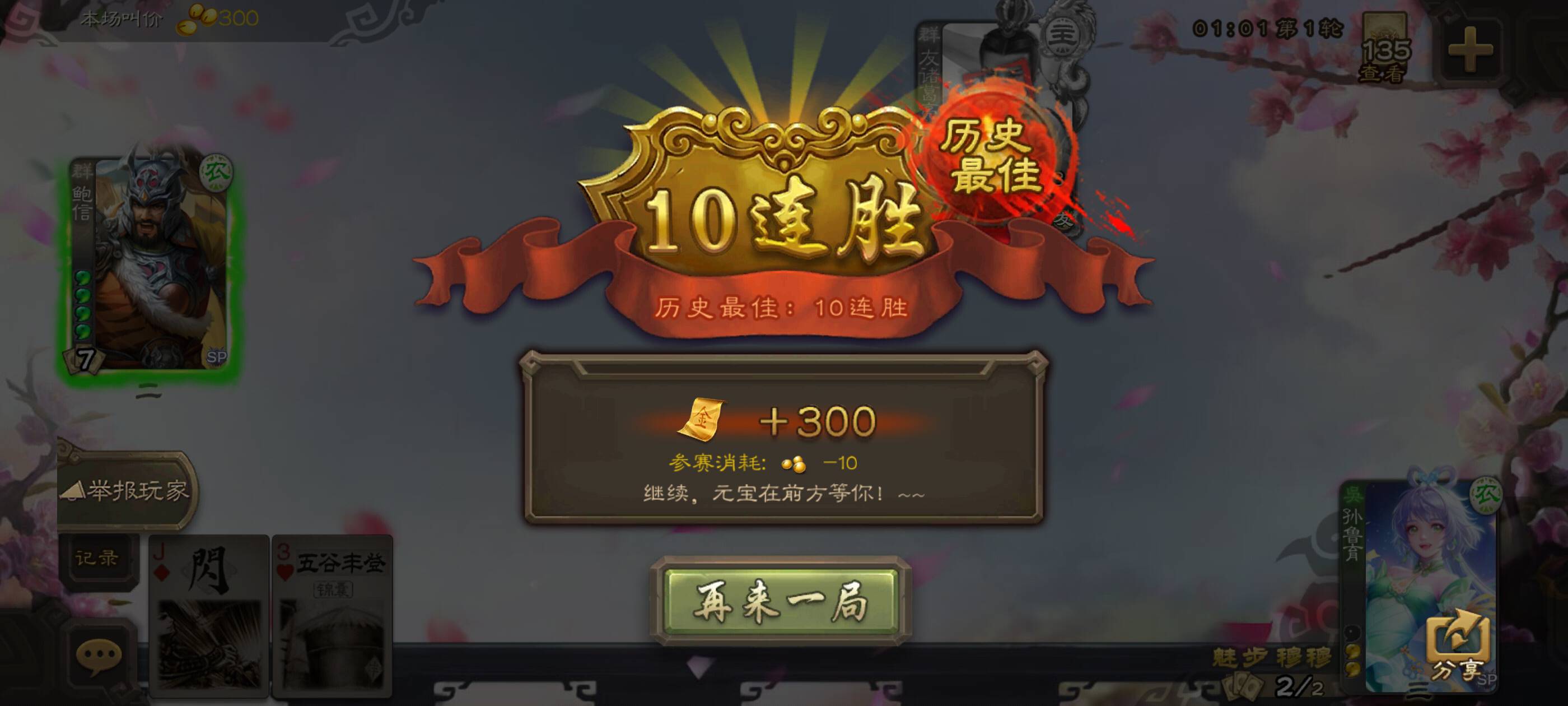 来自版块:三国煮酒今天今天打到两把斗王局,都想送花,求放过,但奈何地主都不让,这个号是上午一把豆王,第一把地主他也送了很多花,但地主也没让,一直打我,虽然输了,也没有什么特别的情绪。