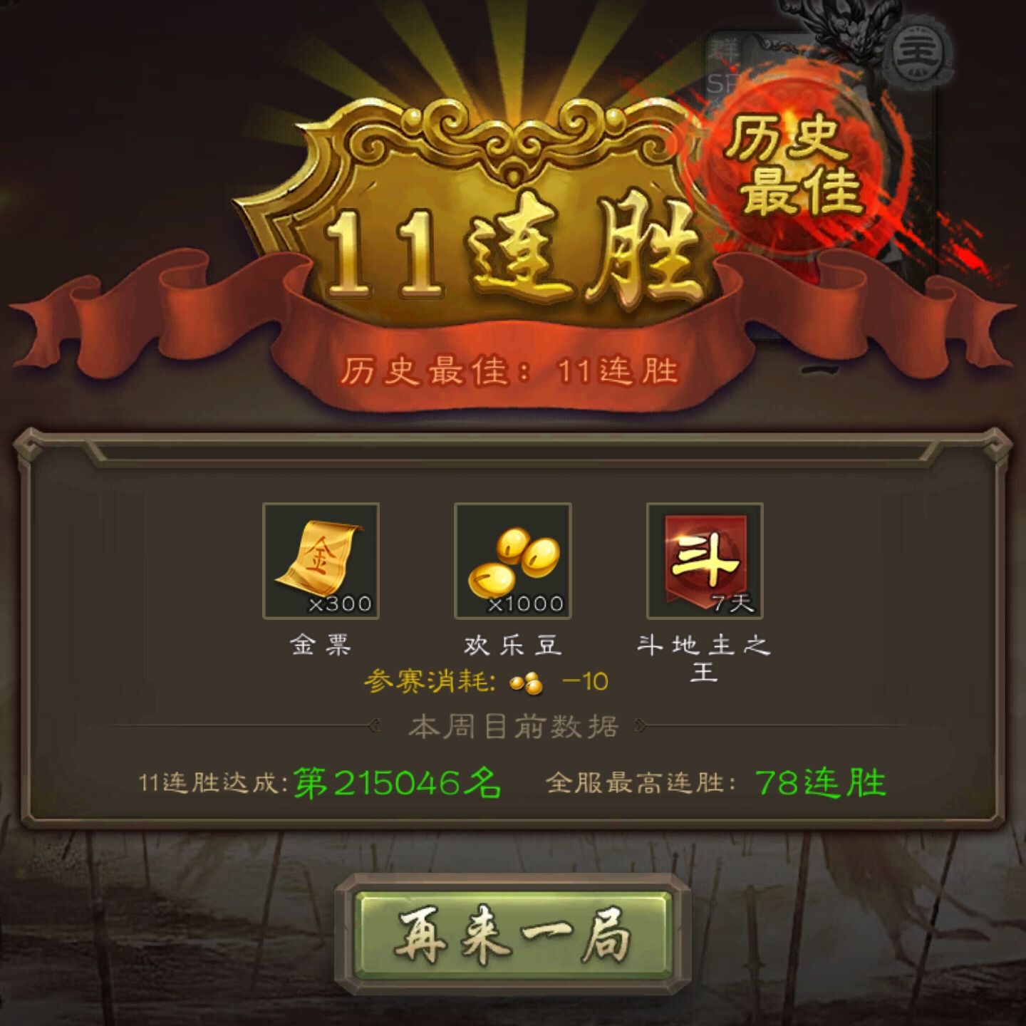注:目前只有参加竞技赛的玩家可以获得三国杀段位积分