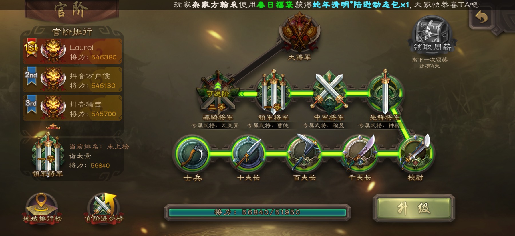 不知道到时候我能增添几个史诗武将,能不能上大将军,当然也有可能中间就坚持不下去退游了,但是目前还是有点期待