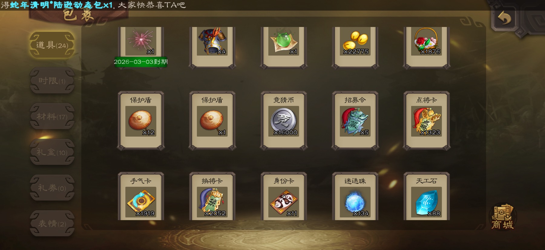 来自版块:三国煮酒突发奇想开个帖子记录一下,玩个4个多月的号,从今天开始,在每天正常玩,每周只开50盒子,不碰天宫跟回廊的情况下,到明年春节2027年2月6号为止,一年时间能攒下多少盒子以及其他资源