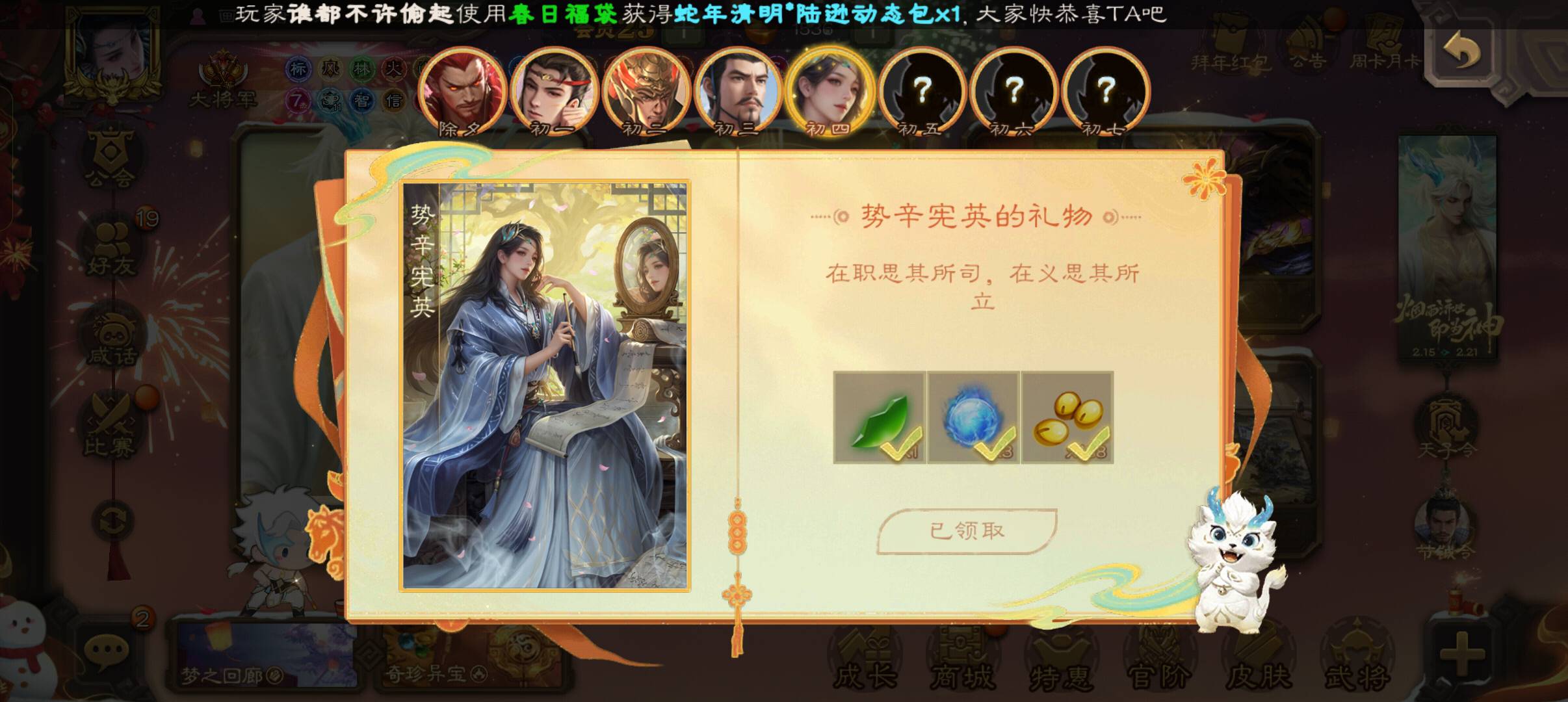 听说这个是根本去年武将的使用频率来的,昨天还想着呢,怎么也该轮到辛宪英了吧,结果今天就来了😄😄😄