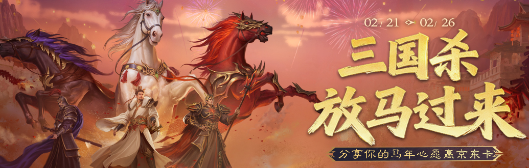 2月21日-2月26日,发帖带上话题 #三国杀放马过来 ,说说你的马年心愿,活动结束后所有符合活动条件的帖子将会获得1000咸豆,还有运气奖10个50元京东卡!