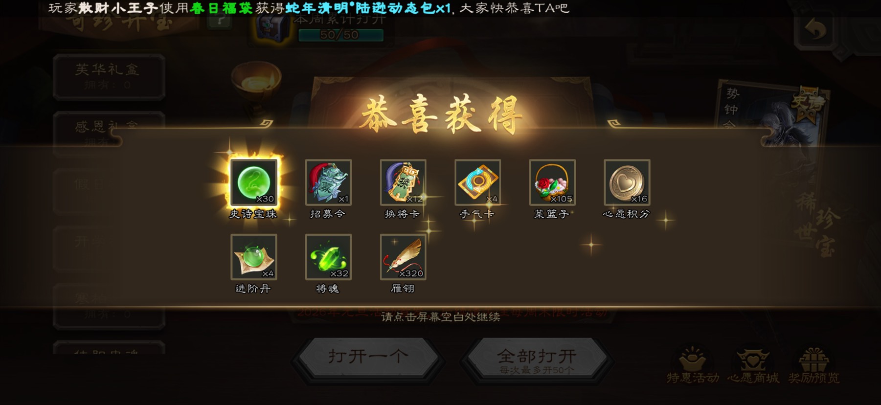 如题,但是不知道该高兴还是悲伤,因为感觉占用了我出权1的名额,才30珠子🥹🥹🥹,我拿88换的,要是姜维就好了。 不过今天运气真的好,其他散盒子也出散珠子,可惜没有元宝了,盒子也抽光了。#出货