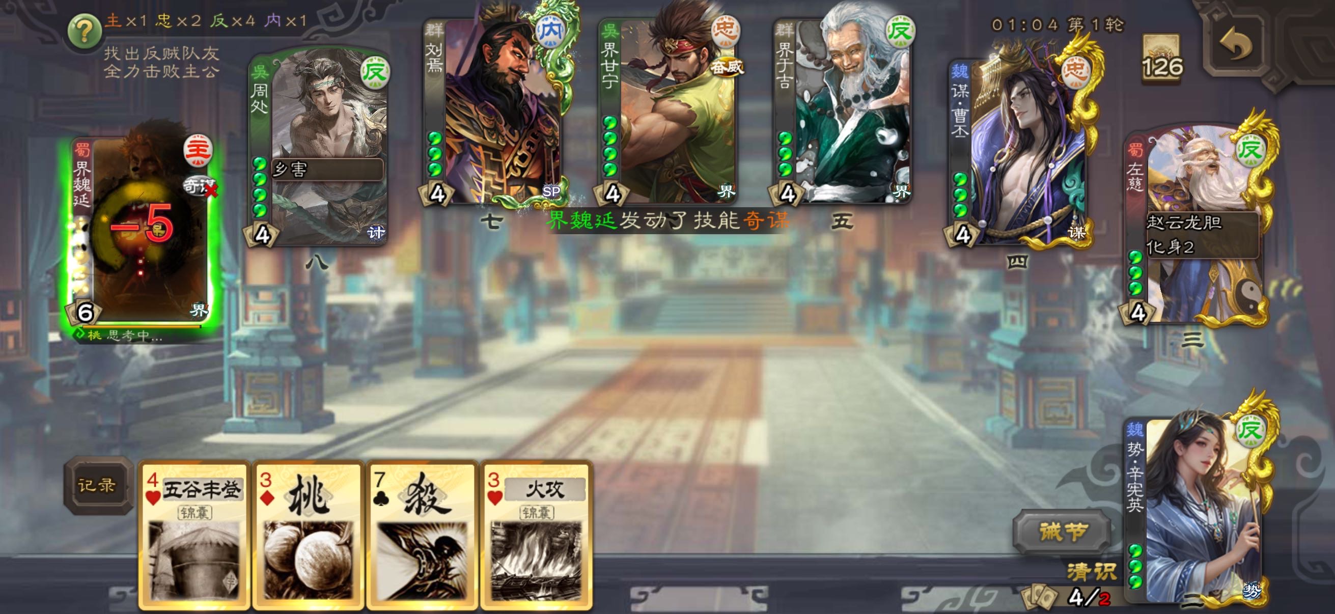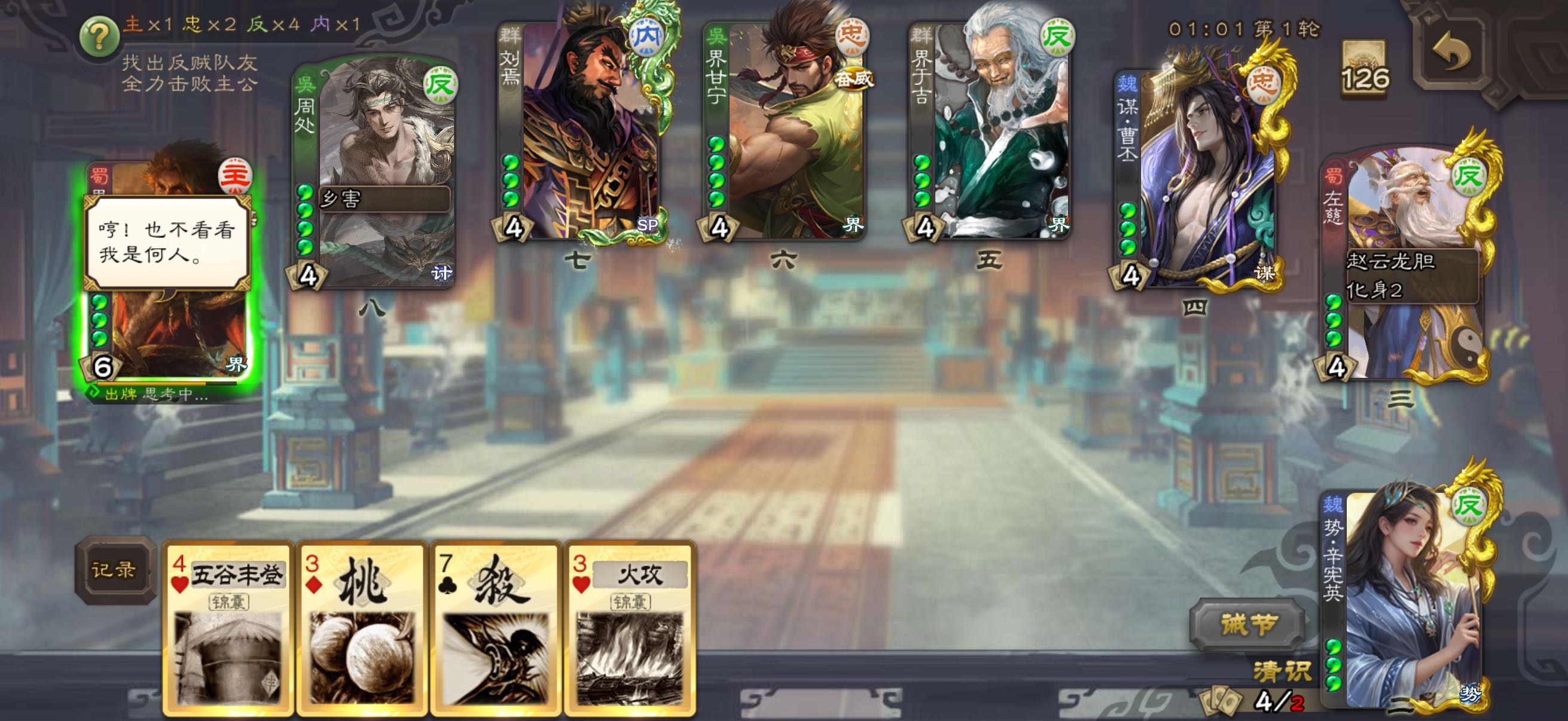 建议直接把主公位置放到9号位,不是打不出压制?不是盲错忠臣他就急眼跳反贼?直接把主放到9号位。不过