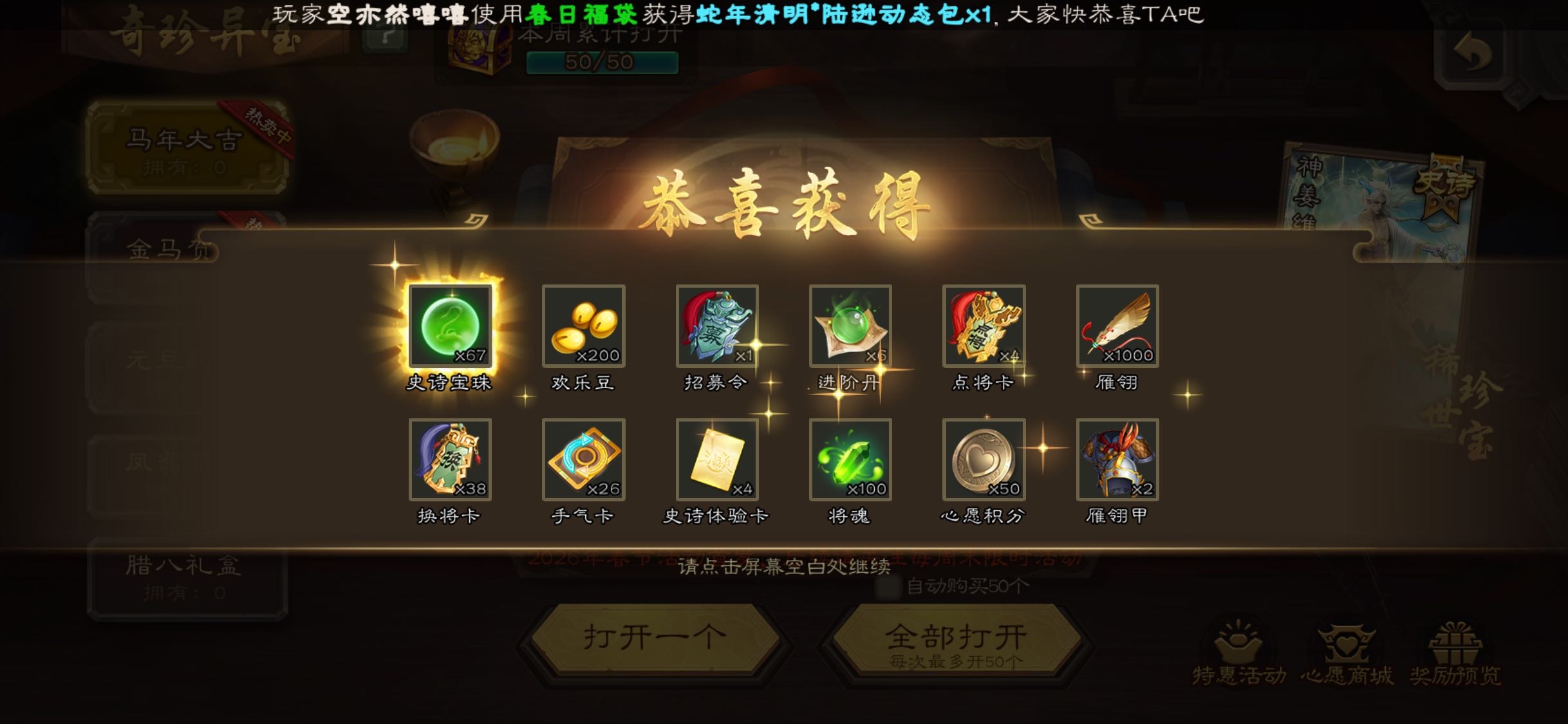 好消息。招募令出,史诗武将。..。