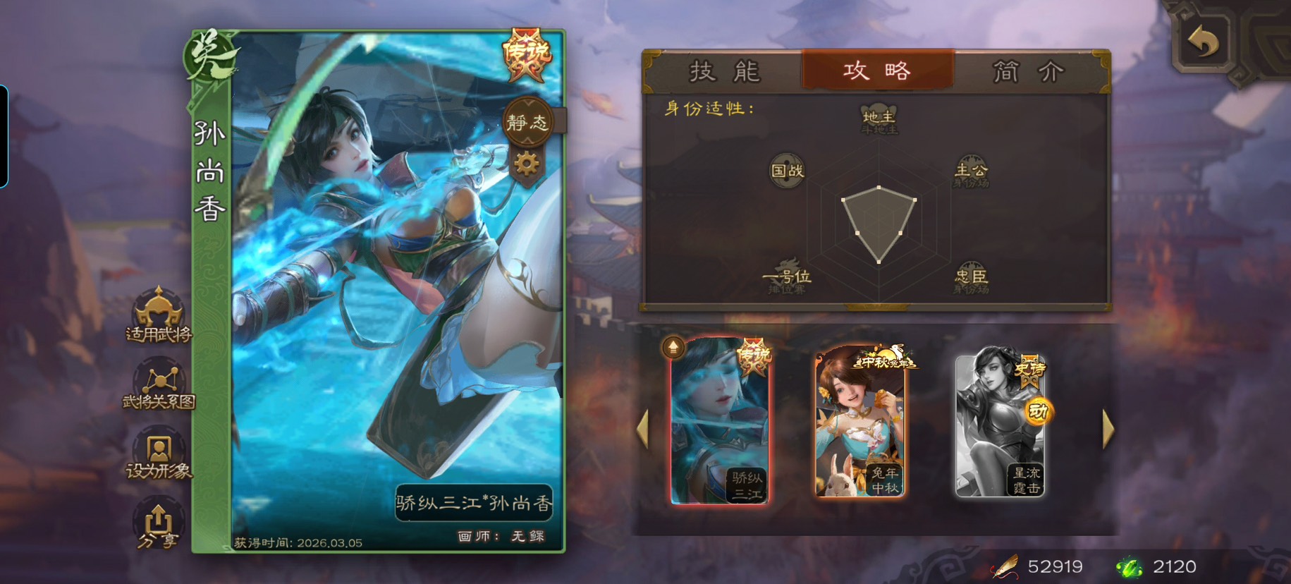 2.目标心仪雀甲动皮,目前5.3w,奇遇季我两个应该都会拿,也不管有没有用性价比了,星黄忠我后面会换,李儒我正好没皮肤