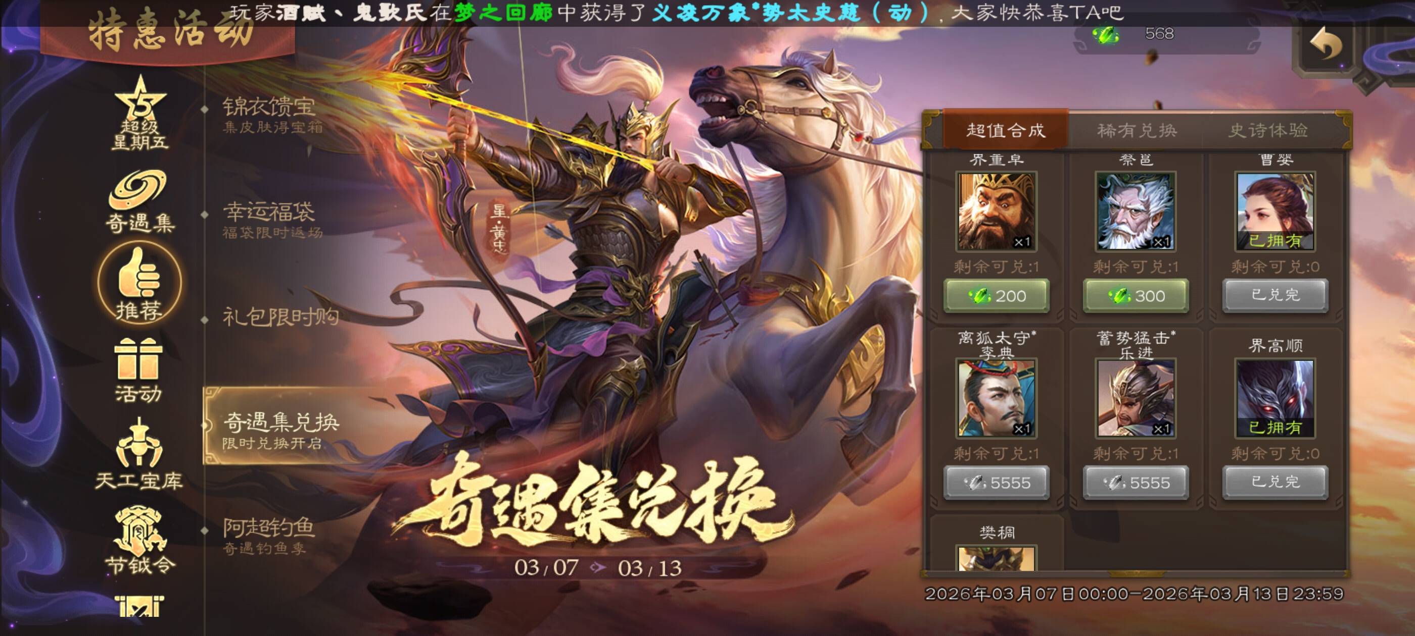 你确定要兑换>>>曹婴x1>>>李儒动态包x1>>>星黄忠动态包x1