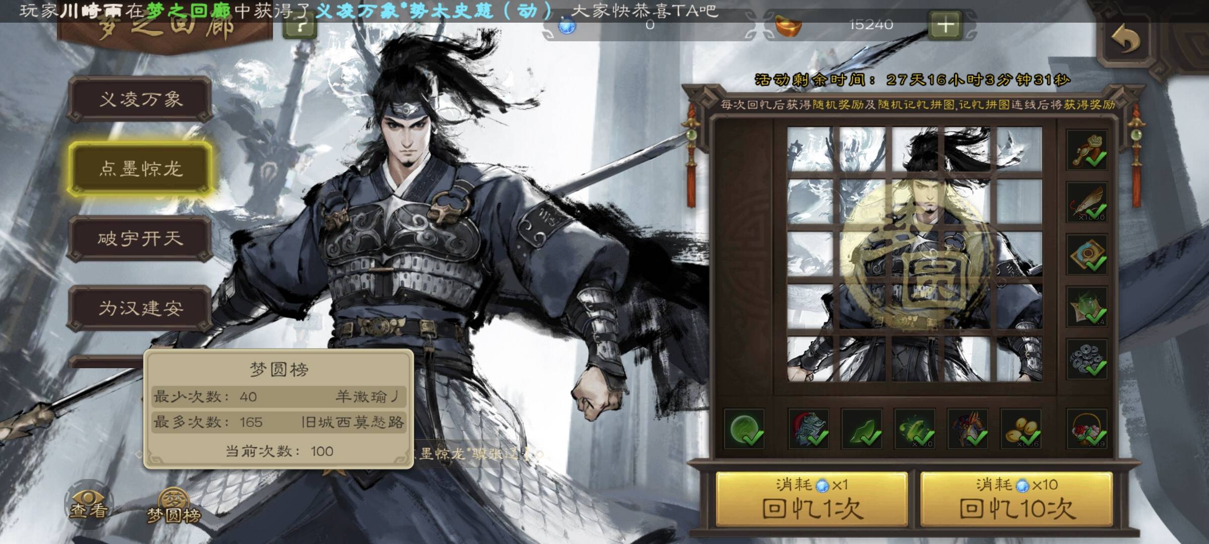 成功拿下梦之回廊榜一。