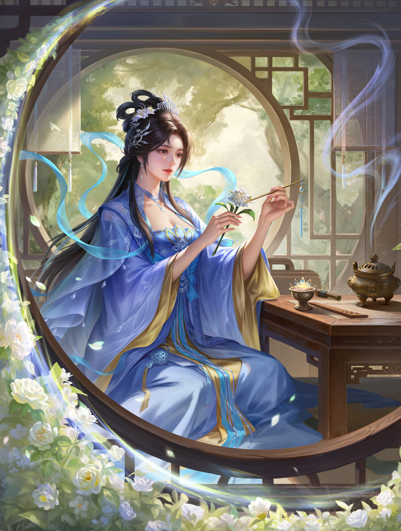园中赏月小窗前