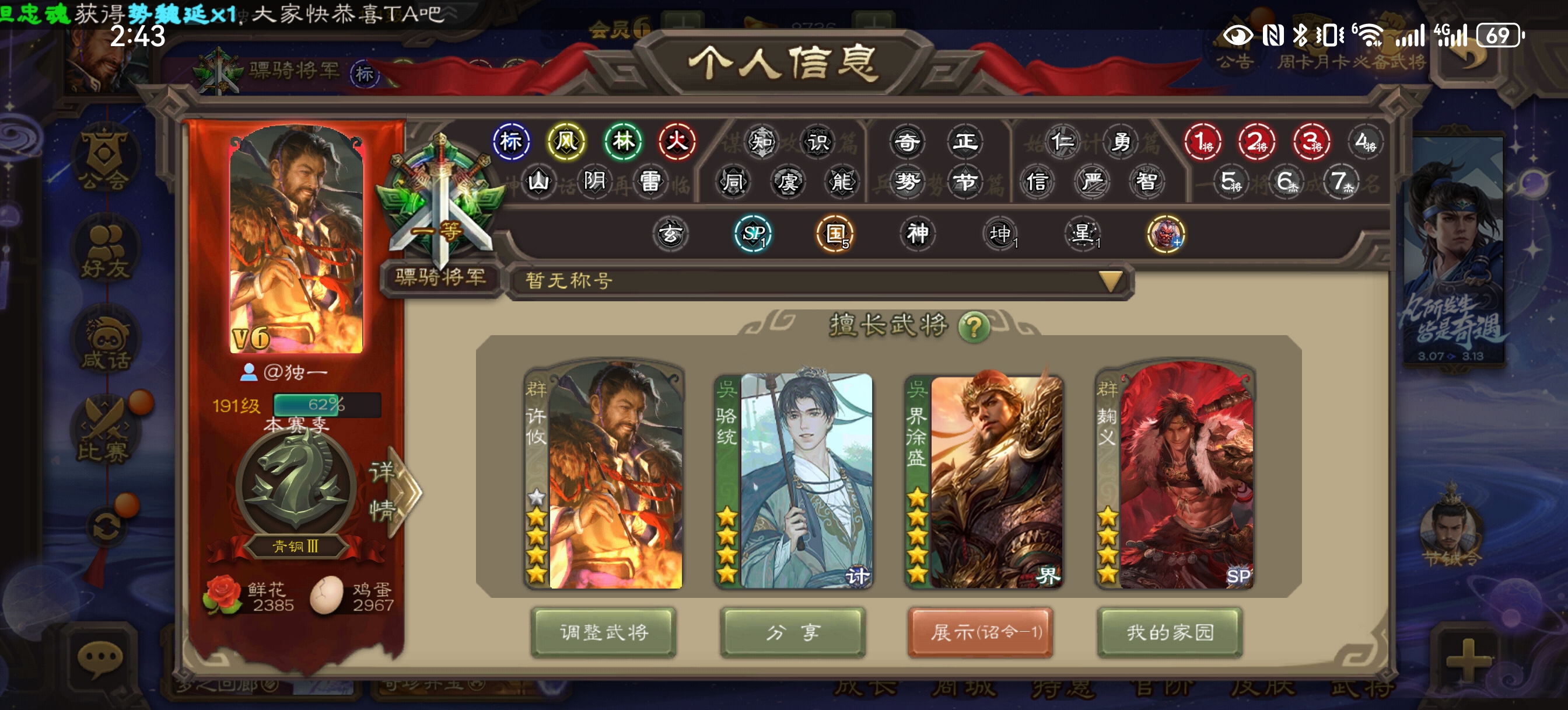 刚买的号子,武将还很少,本人主玩斗地主所以买的斗地主坯子号