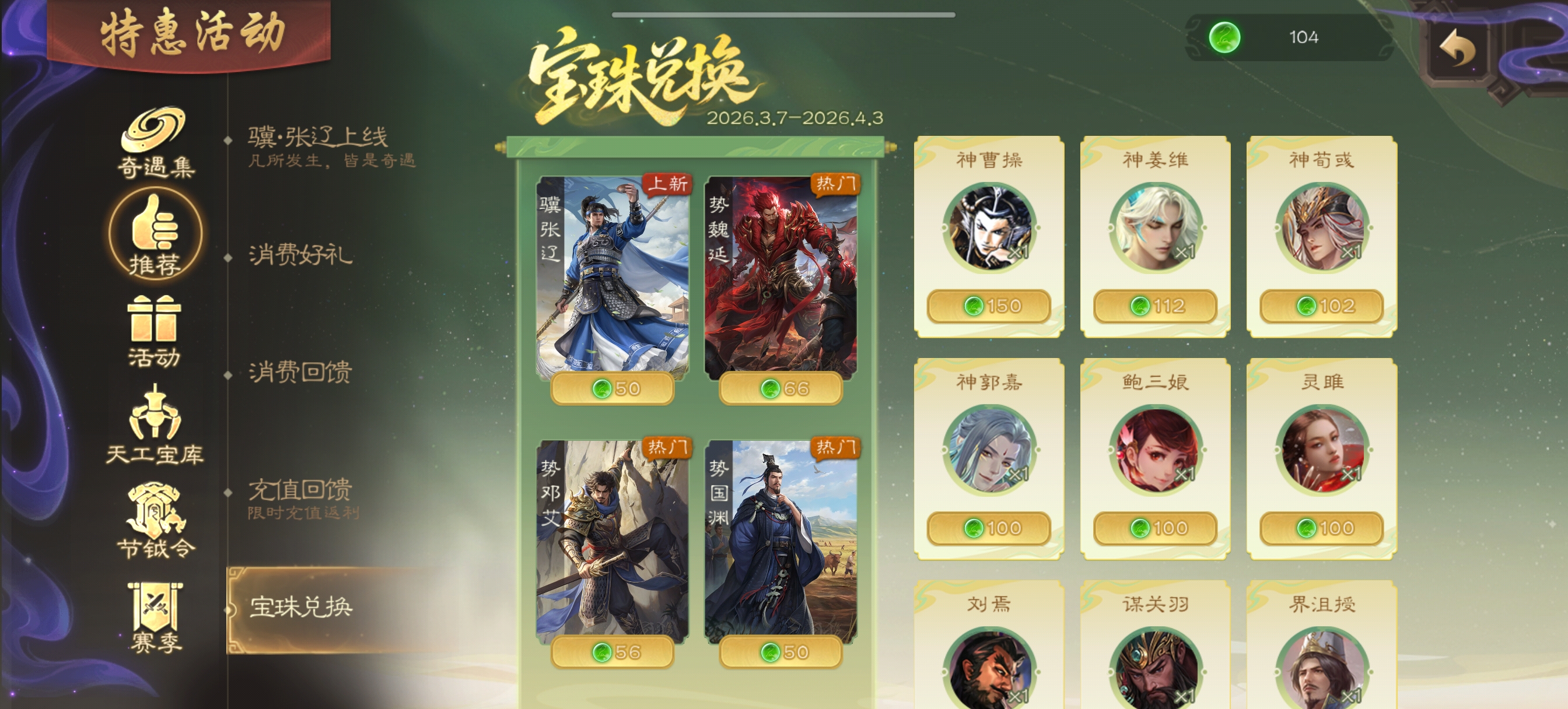如题,各位将军真诚发问,抽中的66宝珠加上我之前攒的一共104个珠子应该换什么武将?以及我攒了15724个将魂应该换啥?