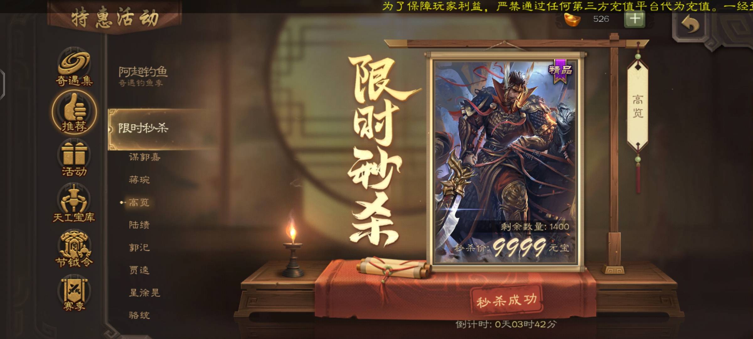 蒋琬很强,高览好像是之前的盒子精品我开出来好几个
