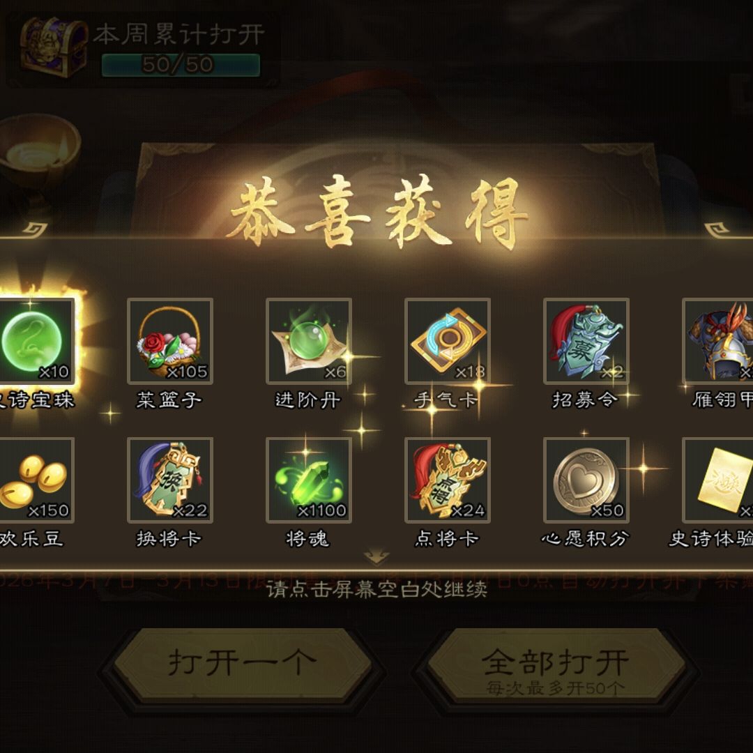 本周50盒,精品1个,千魂1组,碎片1个