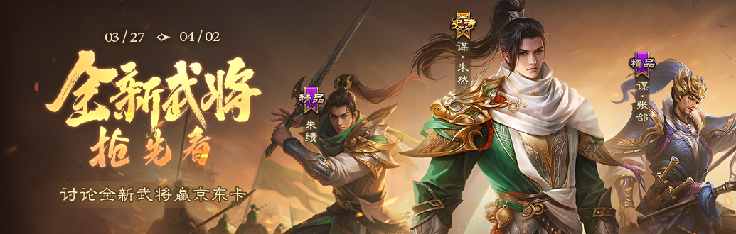 全新武将抢先看!讨论谋·朱然/谋·张郃/朱绩赢京东卡