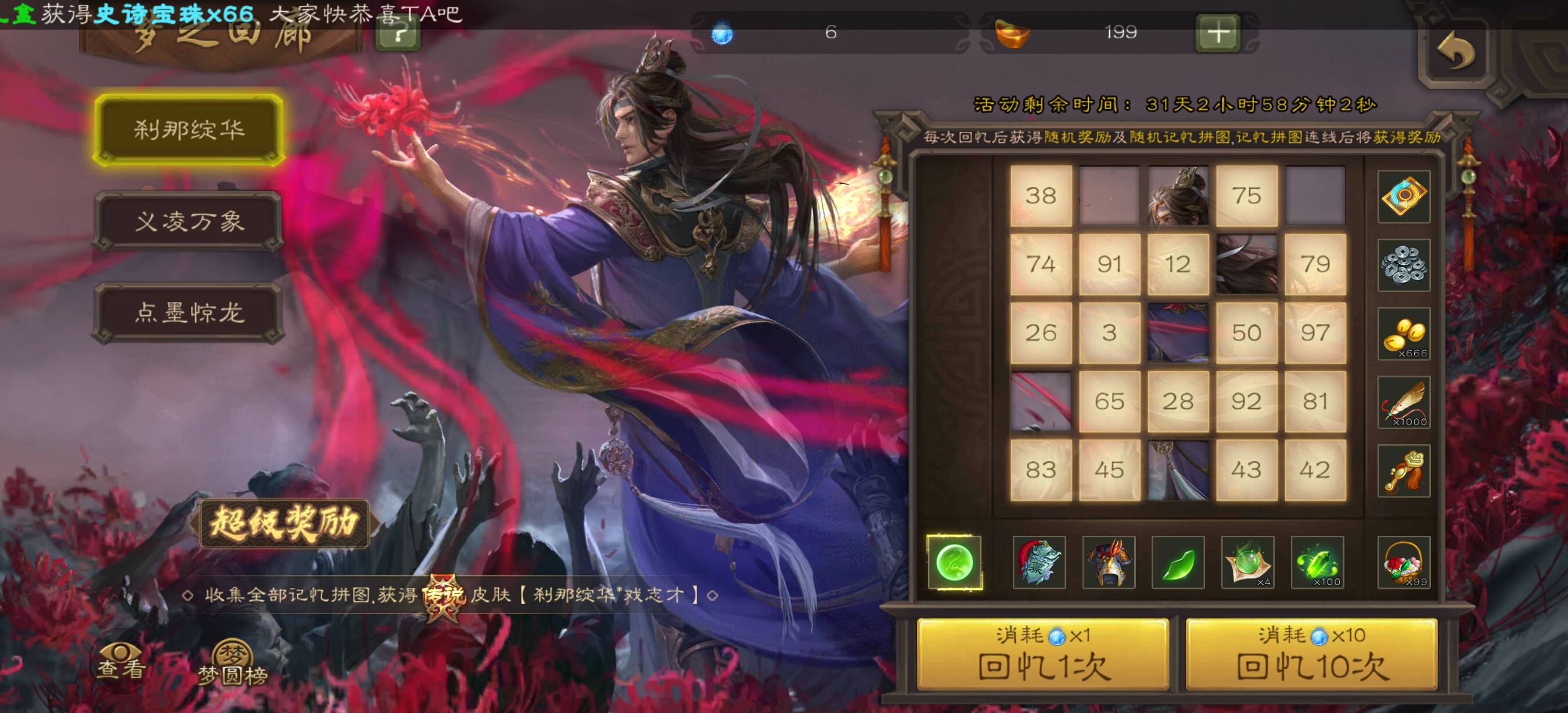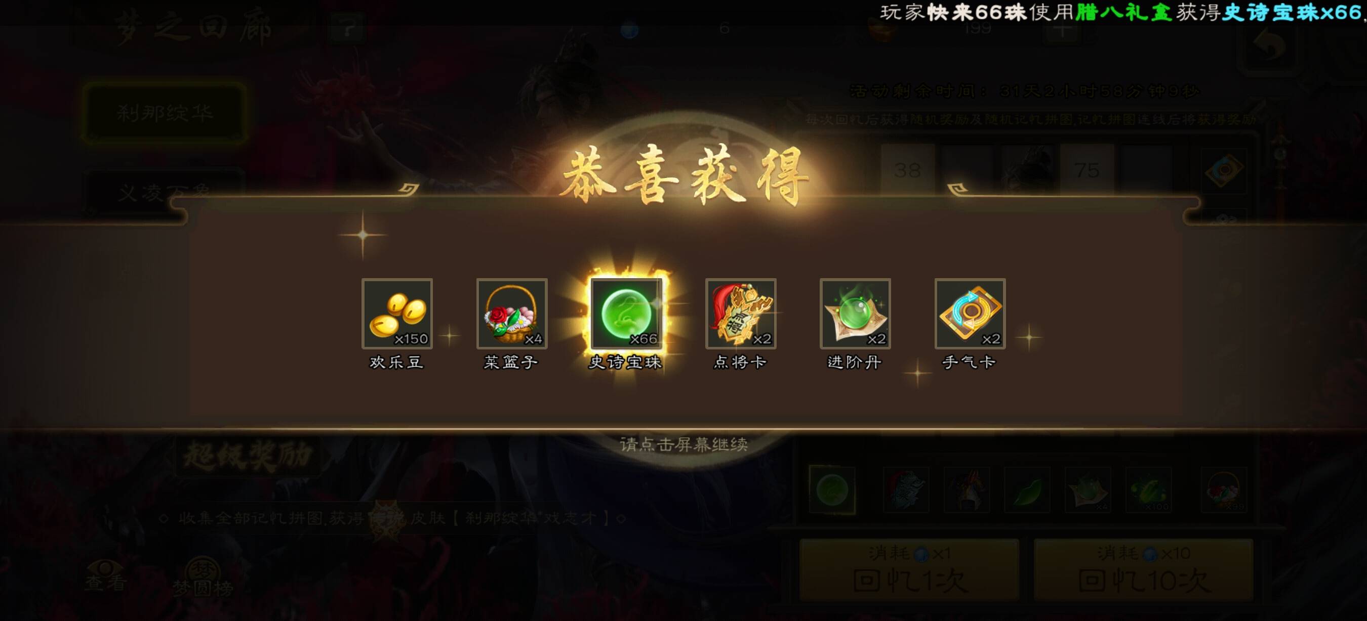 梦之回廊中了66宝珠,欧气传给各位将军