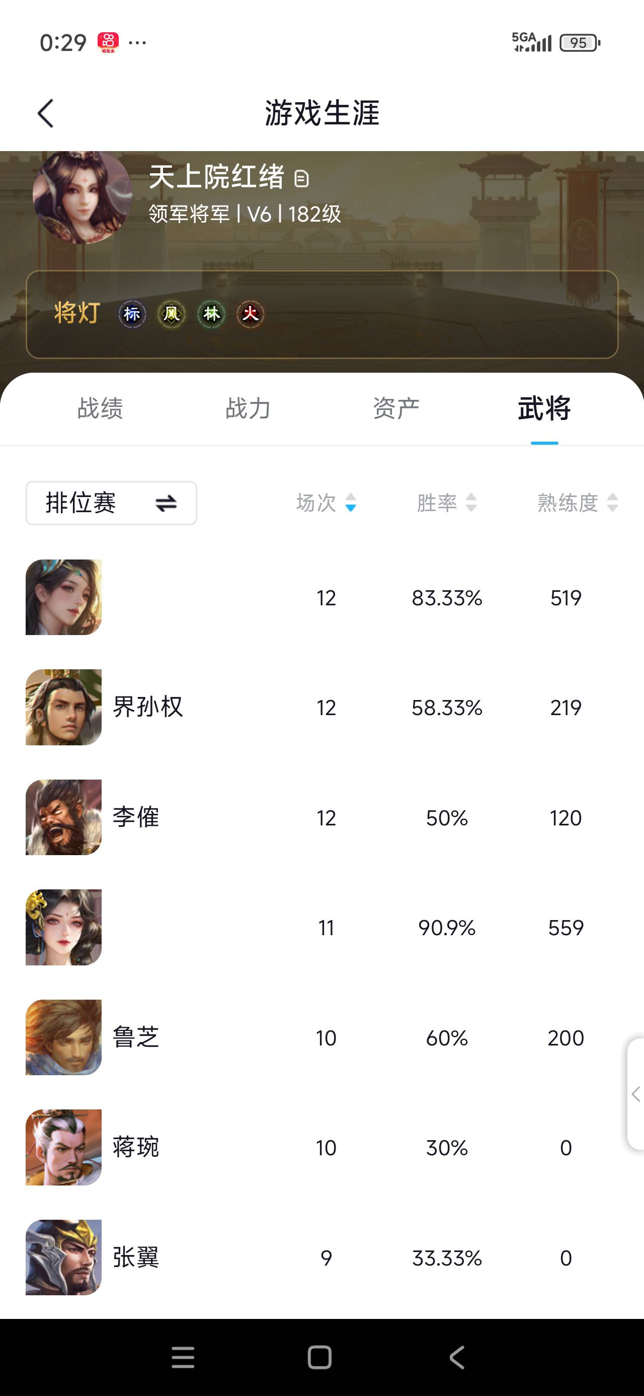最后附上本周排位战绩,除了爱将崔芙和英姐,界孙权和狼袭哥也做出了不小贡献。(实测狼袭哥现在排位出场率真的高,远远超过朱儁和星徐晃了,而且虽然不稳定胜率不算很 高,但上限真的不差,有一把还靠两次连续狼2赢了弄者大人)——