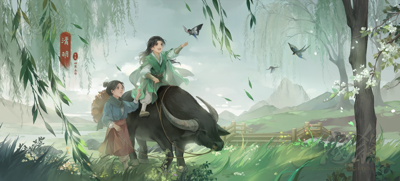 清明时节,细雨微凉,牵着牛走在田埂上。青草青青,微风徐徐,牛儿悠闲吃草,山野安静又治愈,满是春日的烟火与乡愁。#清明景明