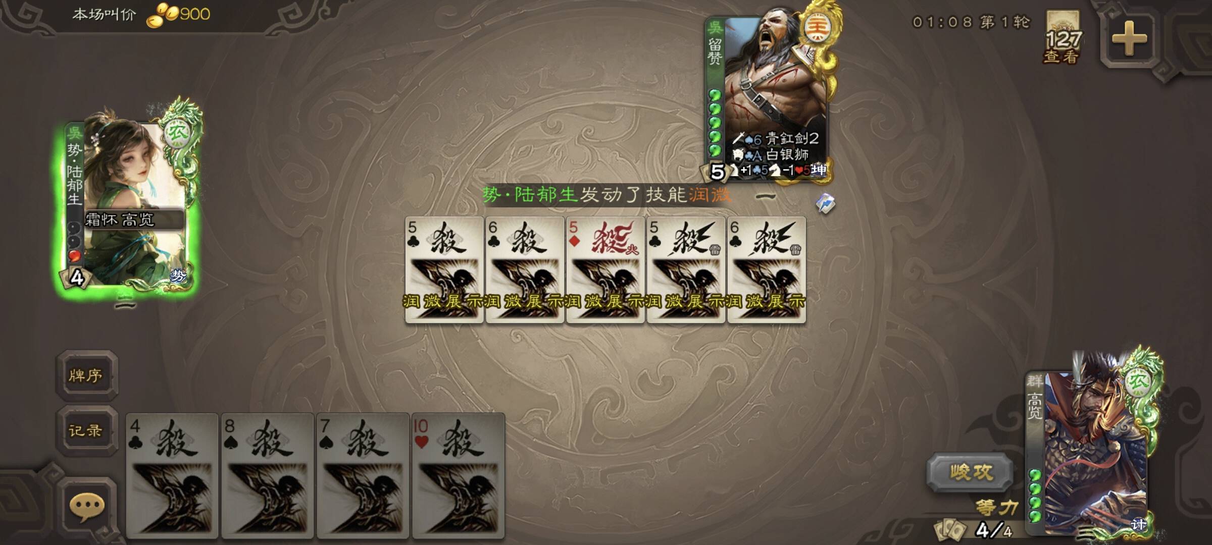 我昨天排位也遇到这样的手牌,开局全是杀,摸的也是杀