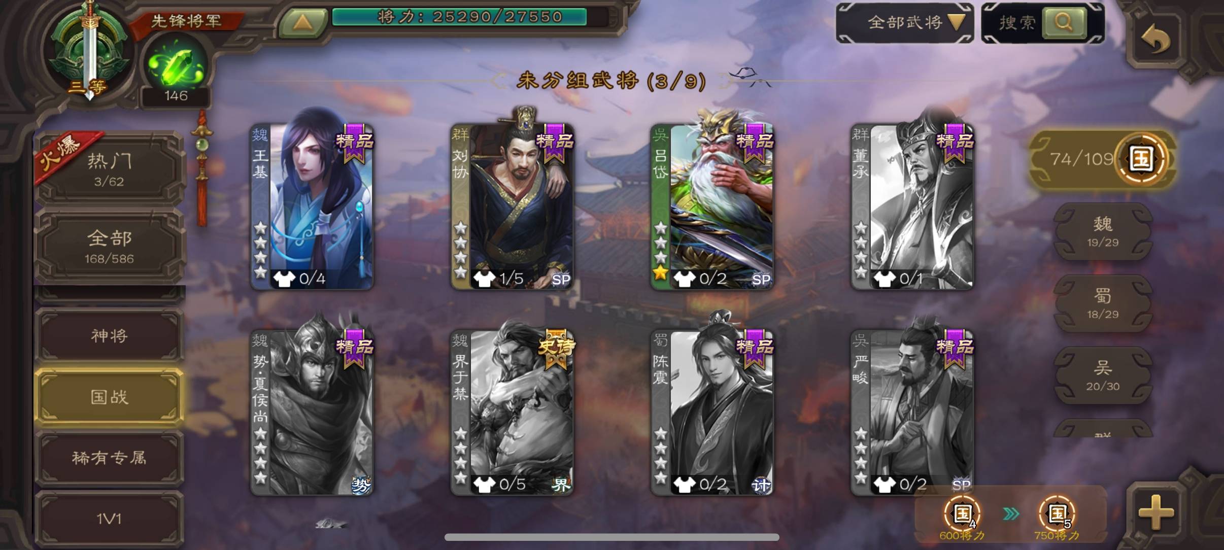 为什么我明明有吕岱,却在国战里选不了,只有在节日限免的时候才能选?