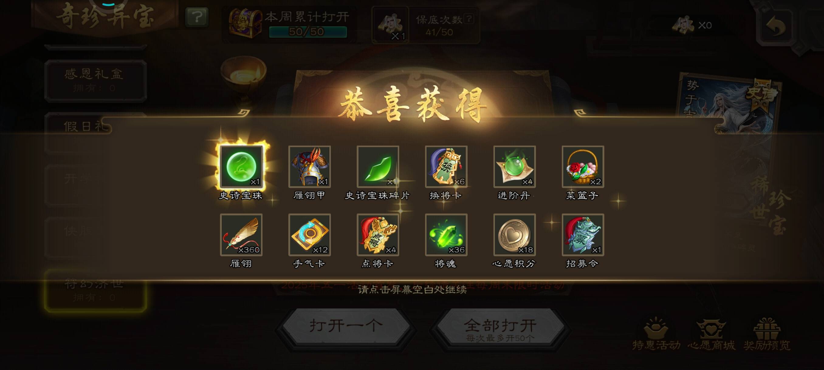 我从5400开到了2000积分三万多银币换了一组郑玄福袋和两组20的盒子张辽的盒子出货了66宝珠,需要等下势邓艾我