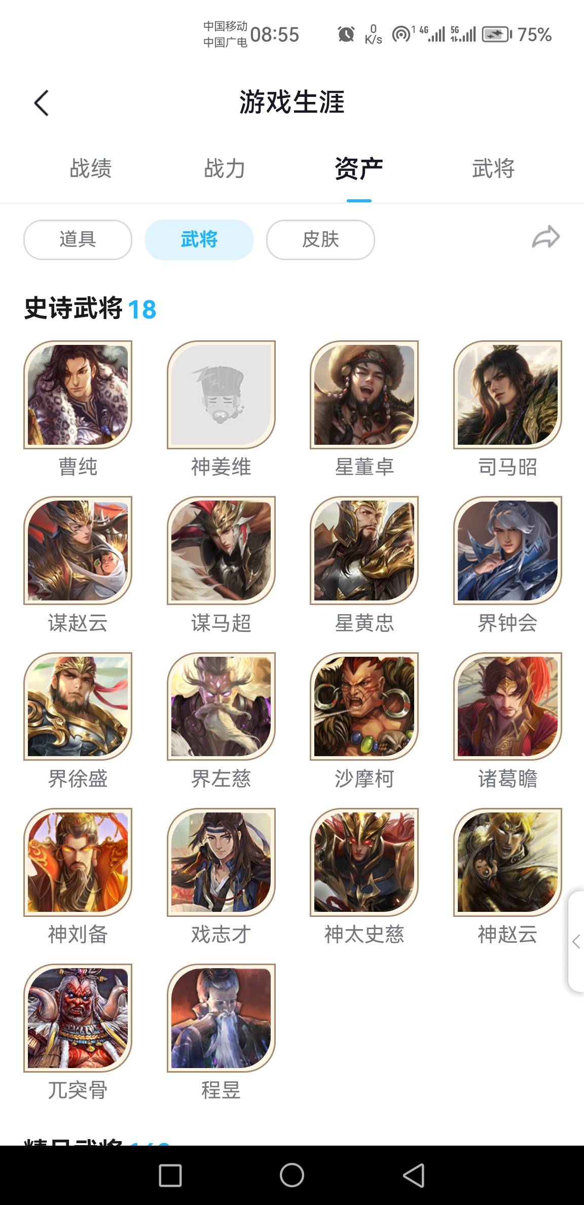 中途几次想退坑不玩了,碎珠子出了神态和星黄忠,昨晚出了2万心愿积分换了神姜维。