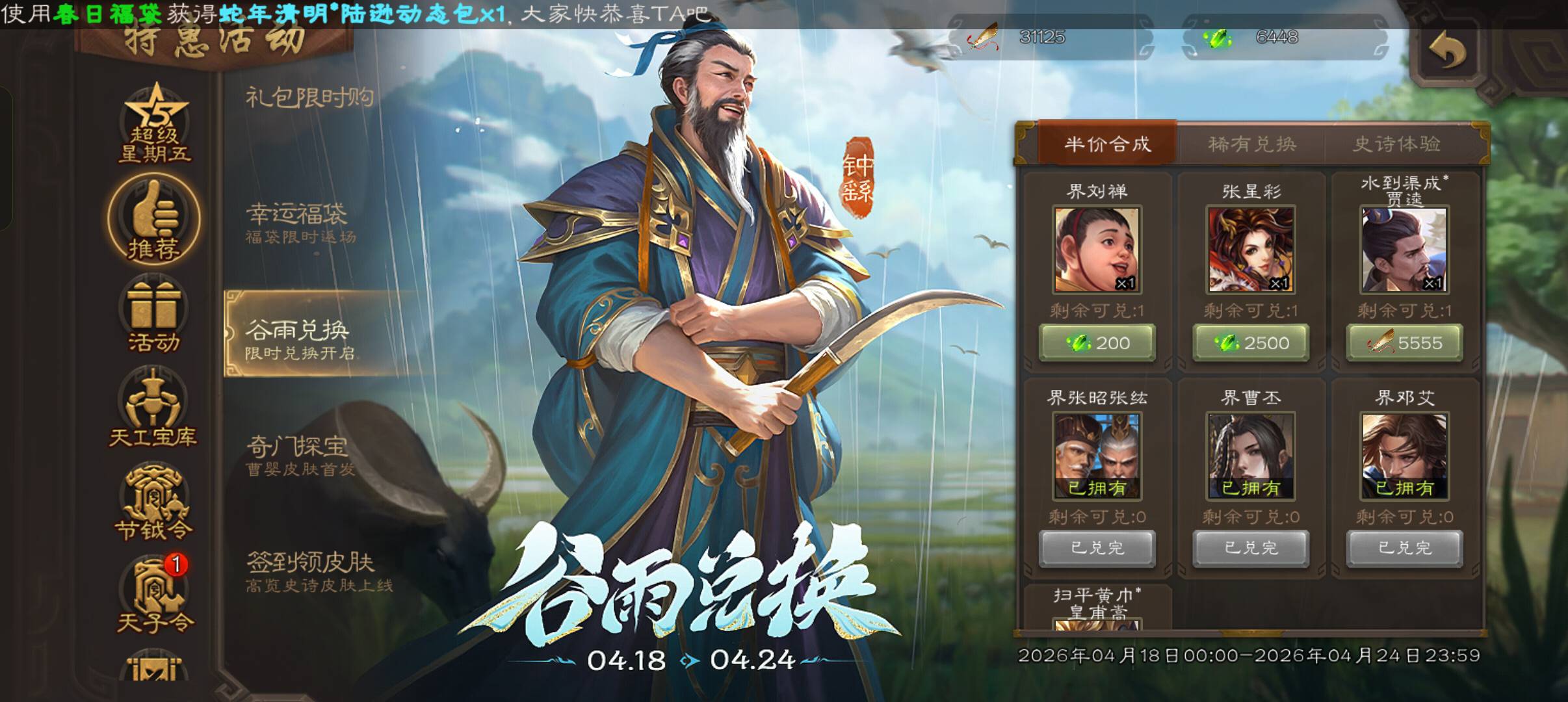 半价张新彩值得换吗,现在有6000浆糊,五一会有更好的半价兑换武将吗,自从把所有的资源都花费在盒子上后,攒将魂和甲的速度慢了很多。前两天刚开个朱然的盒子拿2000。说实话我基本不打军争,如果换了这武将可能也是吃灰,我还想尝试用将魂升星,我现在很多四星武将,呃,要多少才可以升到五星呀?