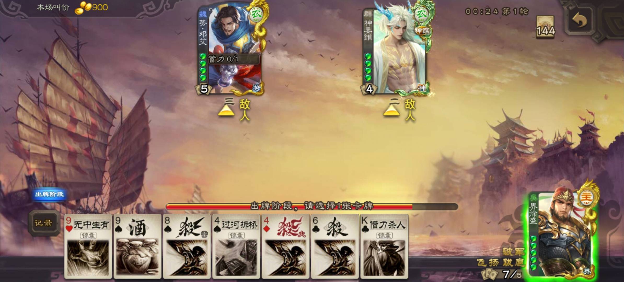 大宝碰见这俩货就找酒杀,秒一个姜维剩邓艾随便打。刚进来还送上花了,姜维死了还观战,下回合直接拿下,乐子