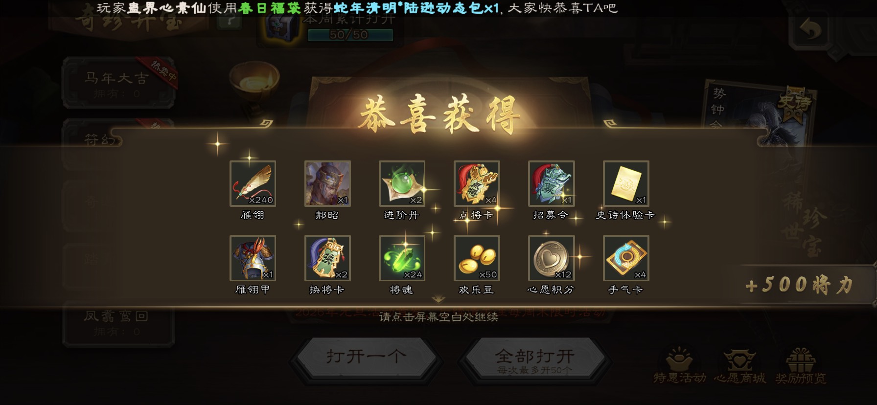 每周50盒开到郝昭,可惜是小号,大号300盒子只出了个界刘备🎈。。。