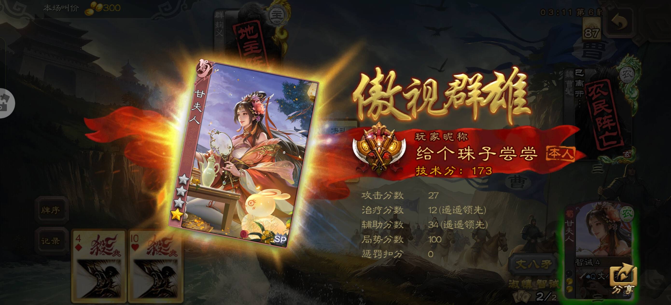 以前也知道甘夫人强但是一直拿她当辅助将🙃,现在看单挑也挺强的😋