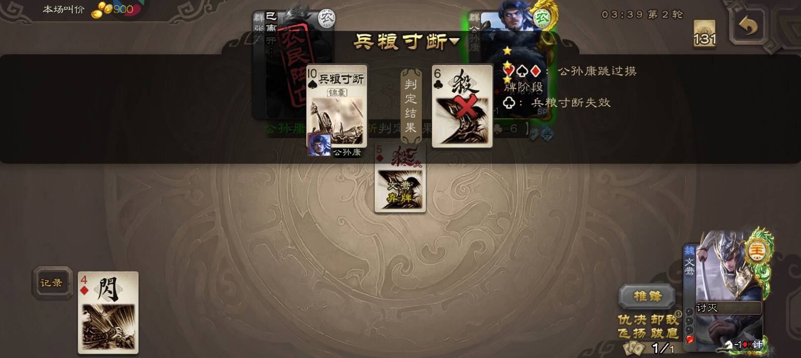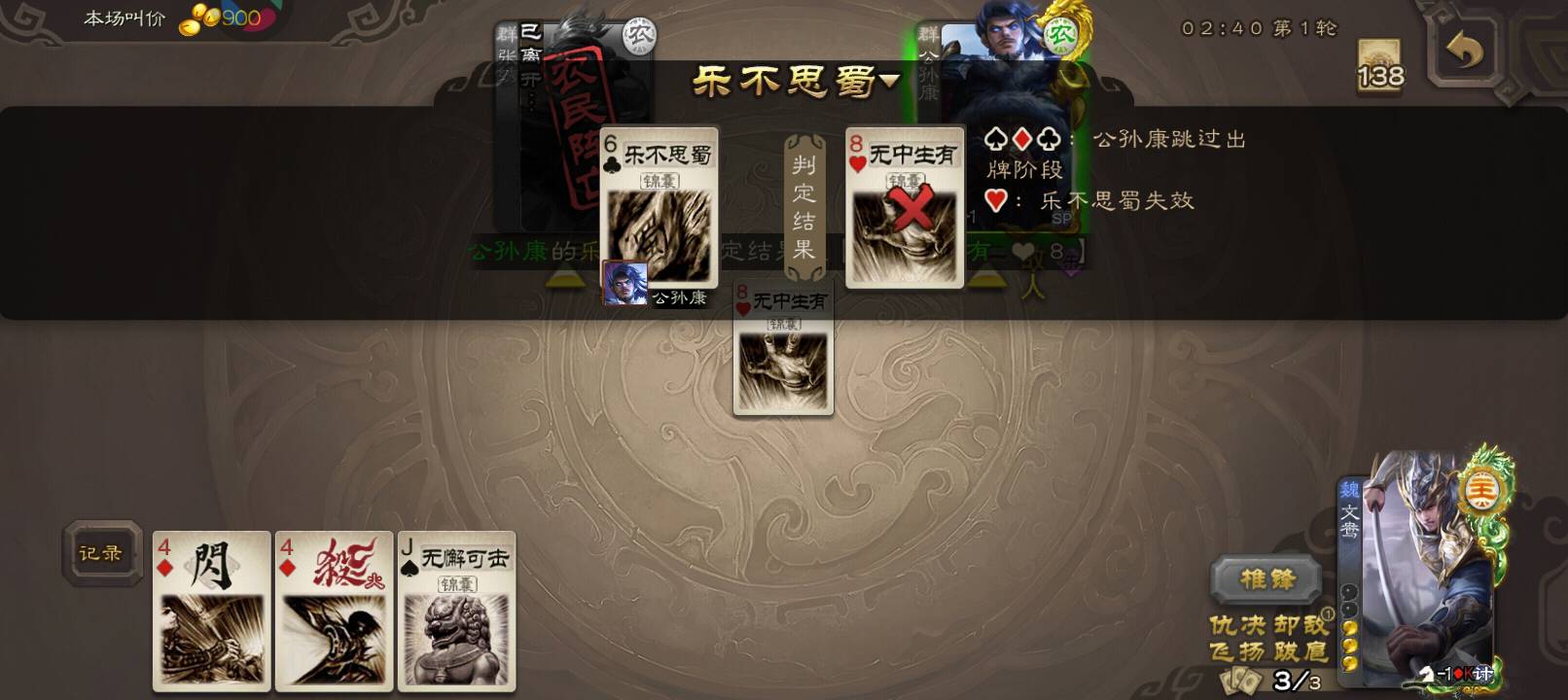 赢了,要是公孙康不挂闪电就输了。难评。