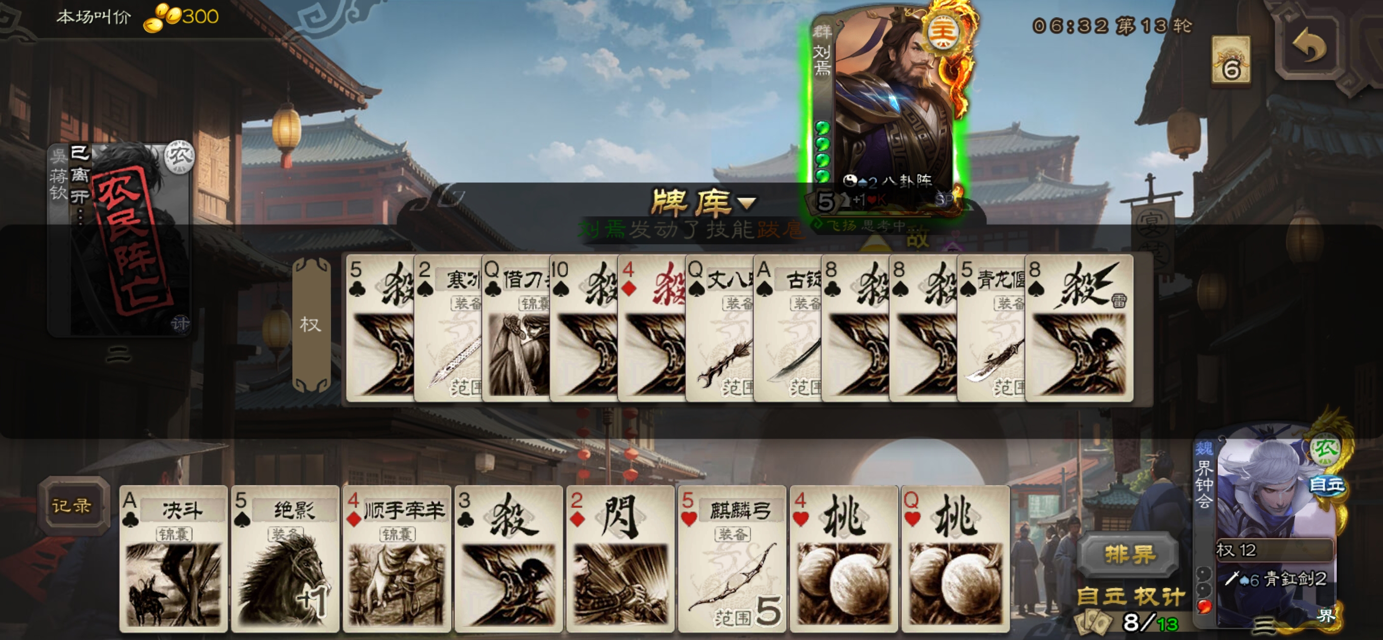 虽然有立牧回血功劳,但给了界钟会13个回合的机会都没掉什么血
