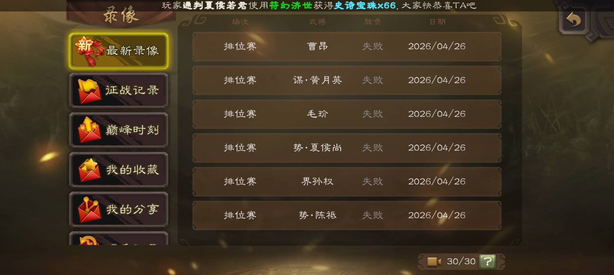 不是,这运气太差,我跟你差不多将面,几乎都赢了,有些局我还是精品爆打史诗