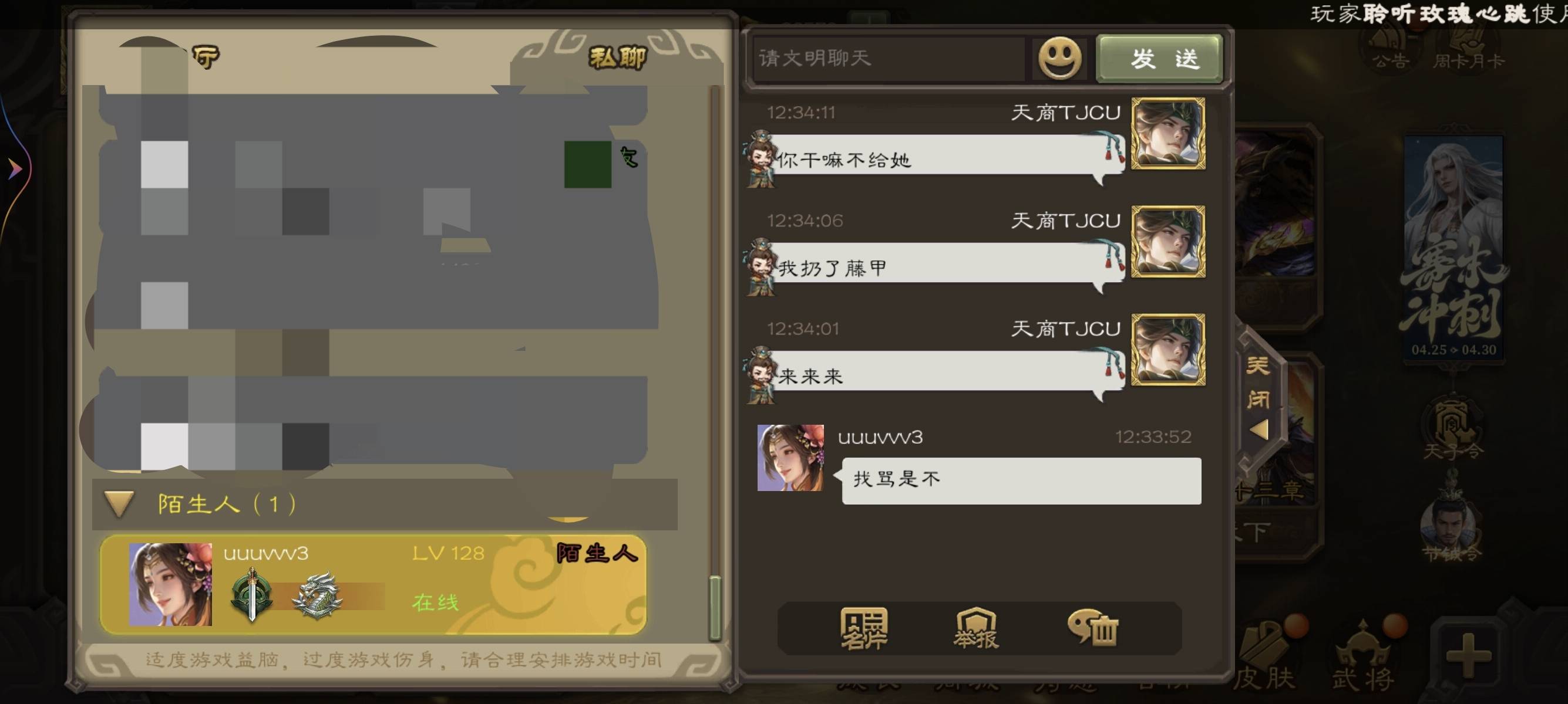 对面是神赵云,我开局就刷了张藤甲扔进弃牌堆,好让黄月英在第一轮就发动技能“奇才”限制赵云,结果这beyond的三轮没发动过技能还有脸砸蛋,找骂是吗?