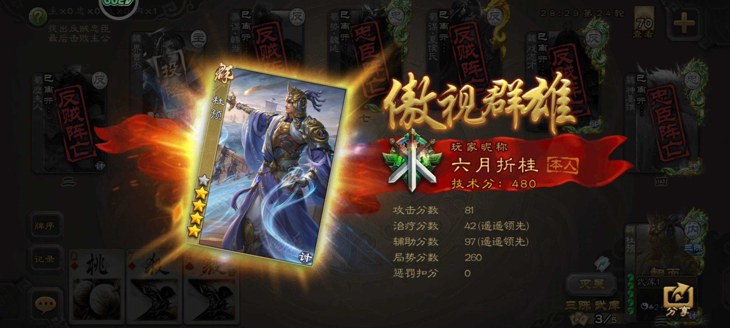 其实三国杀没什么太高的操作,每局游戏看到将面,就差不多知道胜者花落谁家了,所以才早就了现在的“大逃跑”时代,因为弱将基本不具备翻盘能力,像这把尽管磨了这么久才结束,但结局依旧是我赢,甚至满血赢。他们只是哭哭支撑,一点攻击力都没有