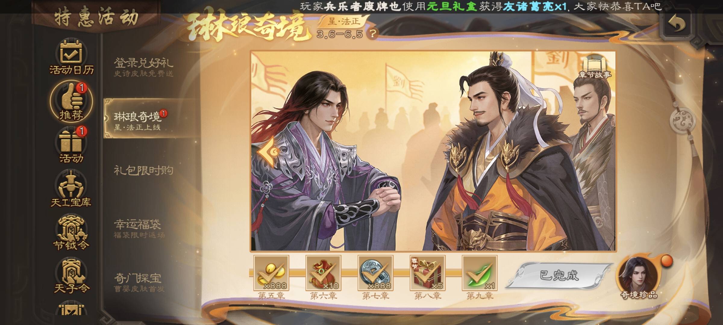 武将礼盒我就不领了,应该是有李丰的度的。
