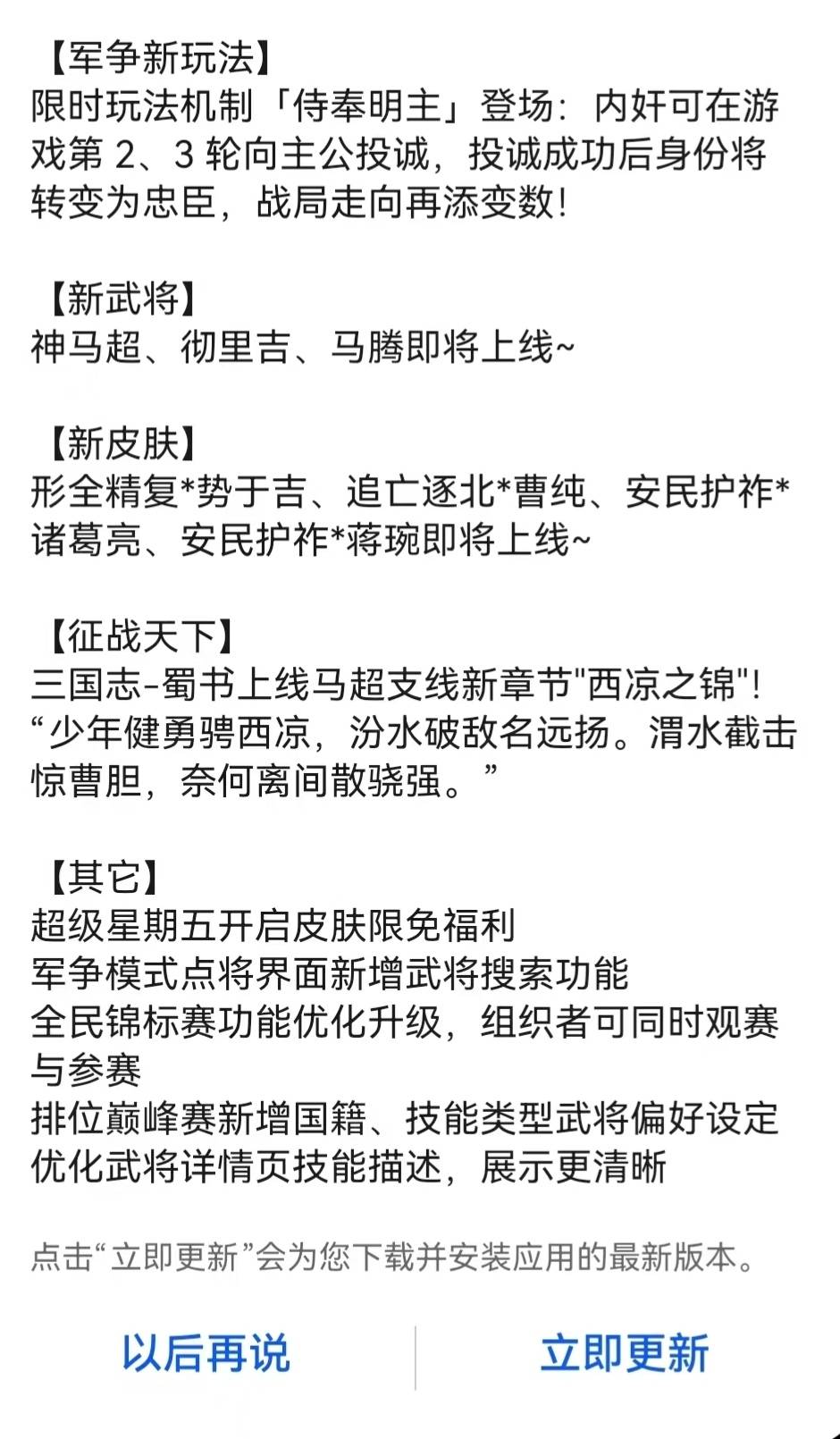 杀批速报 马腾即将上线 永久武将皮肤限时领取
