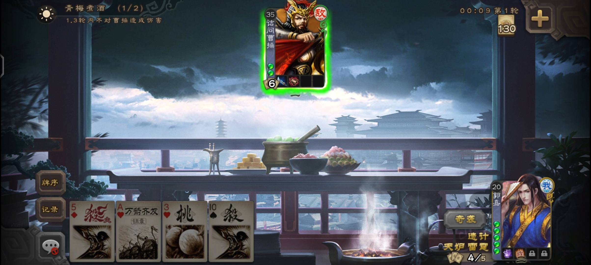青梅煮酒,前三轮不能动手,后面七血只吃雷伤,武将都是20级的,有没有办法过。